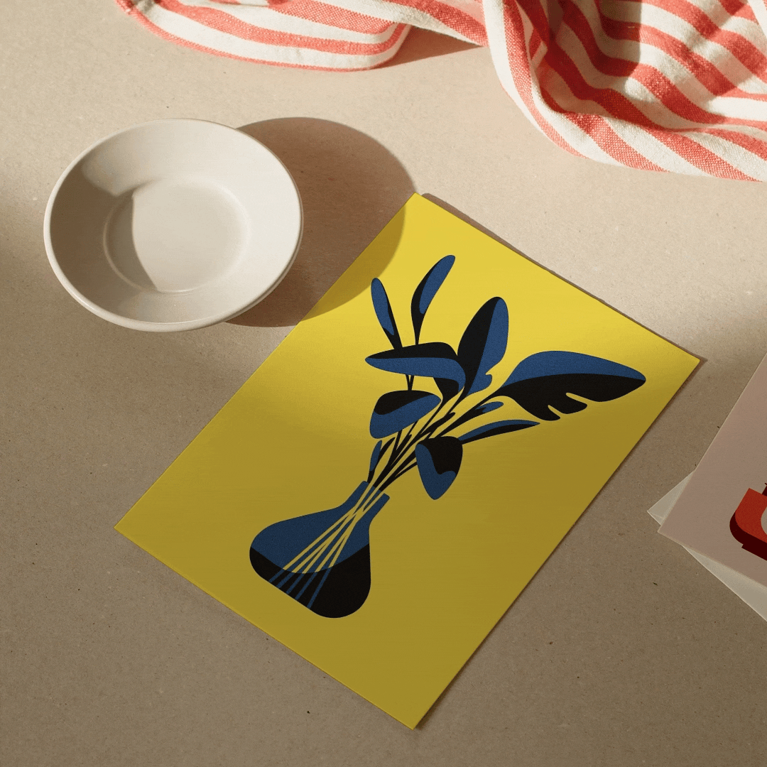 Botanical postcards realm of imaginary flora, consisting of vibrant colors and beautiful shapes. Modern and minimalistic illustrations that work perfectly in any size from greeting cards to big art prints for home decoration.